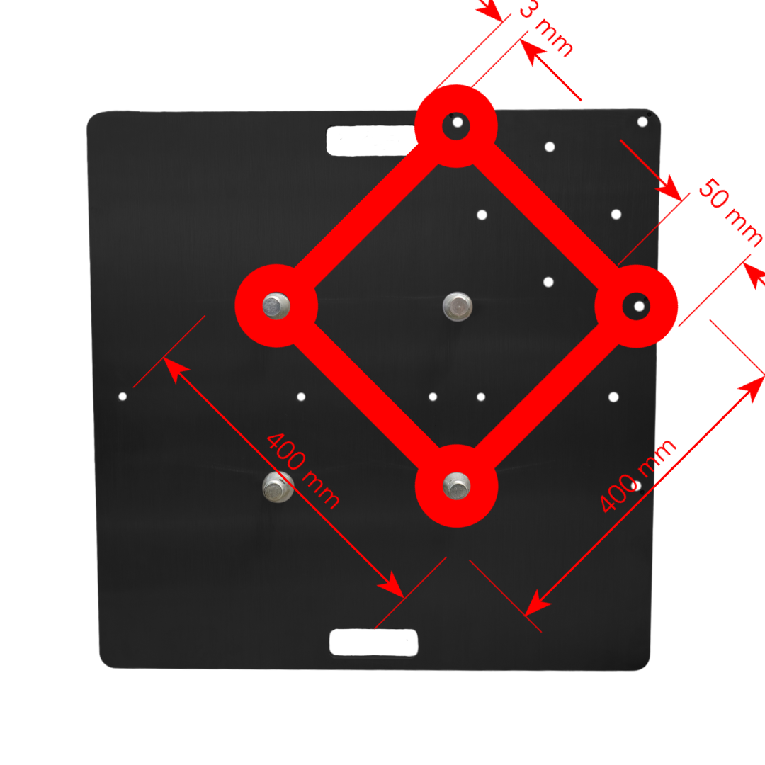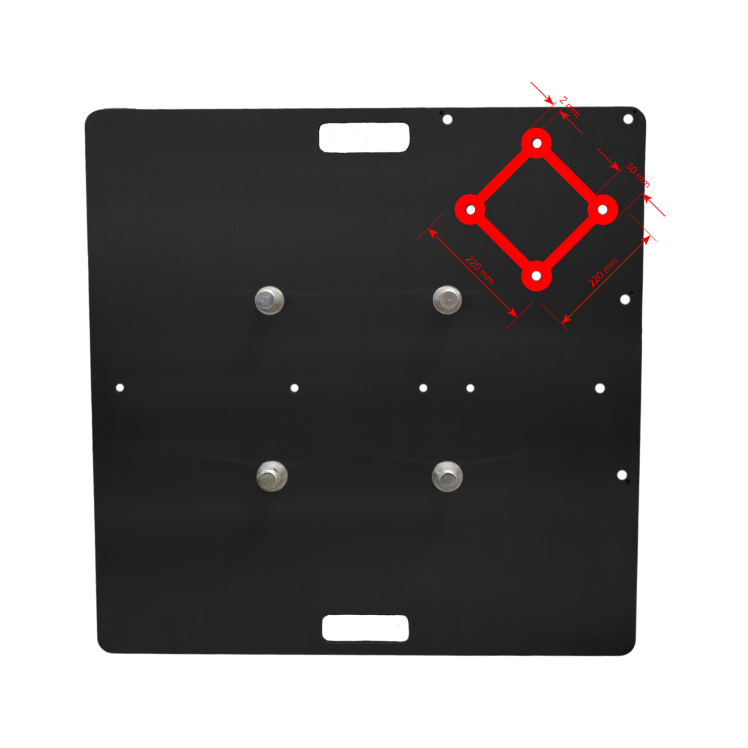 Black Aluminium Spigot Box Truss Base Plate (750mm) with Centre and Side mounting for 290mm Box, Triangular and Flat Truss and 220mm and 400mm Box Truss