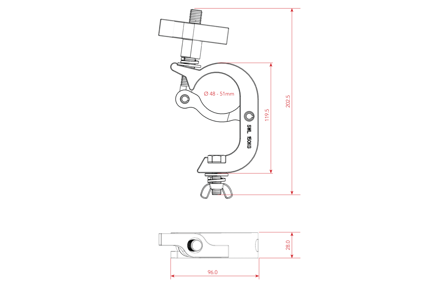 CLAMPT50L - Aluminium Trigger Clamp (Suits 38-51mm) - Black