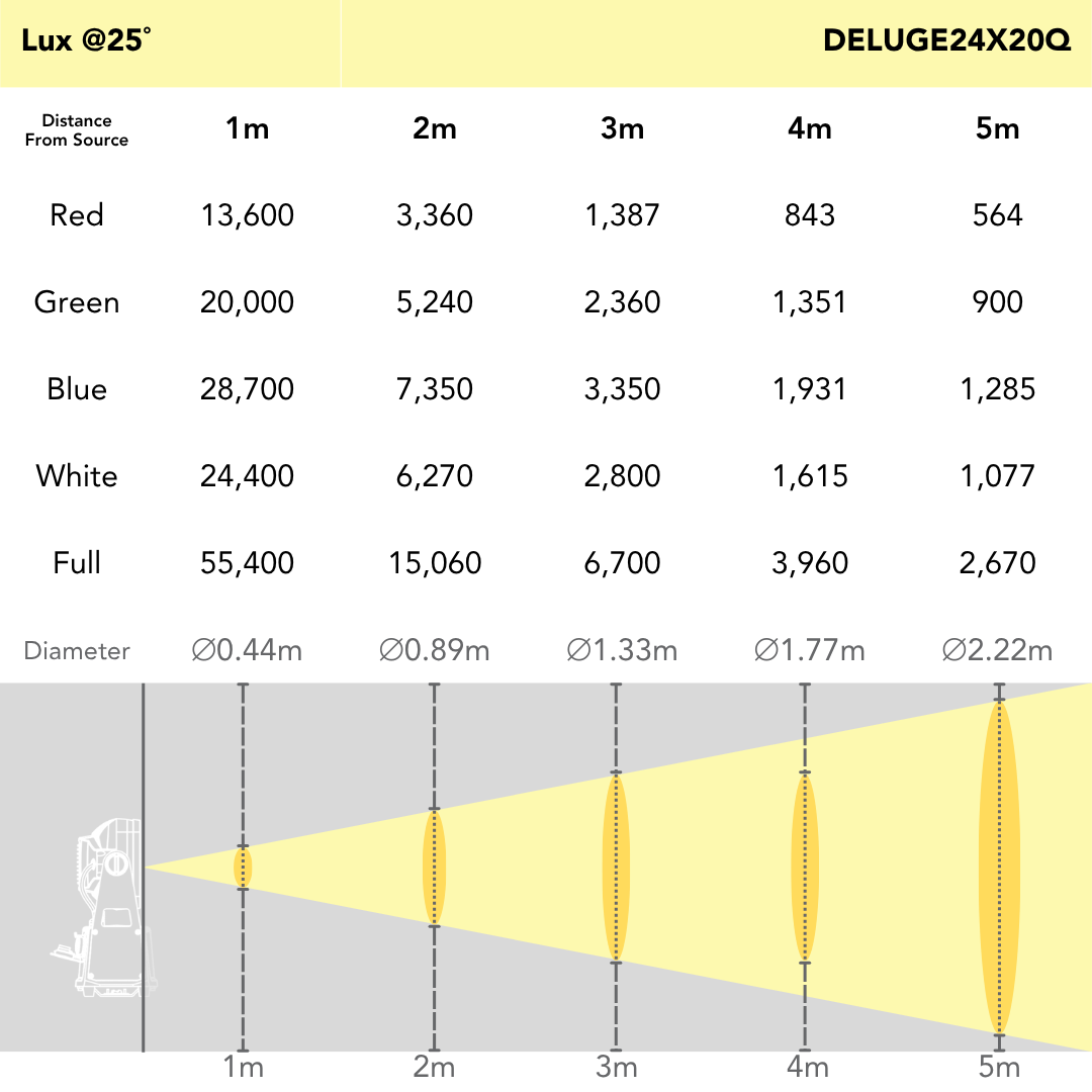 - Light Source: 24 x 20W RGBW LEDs