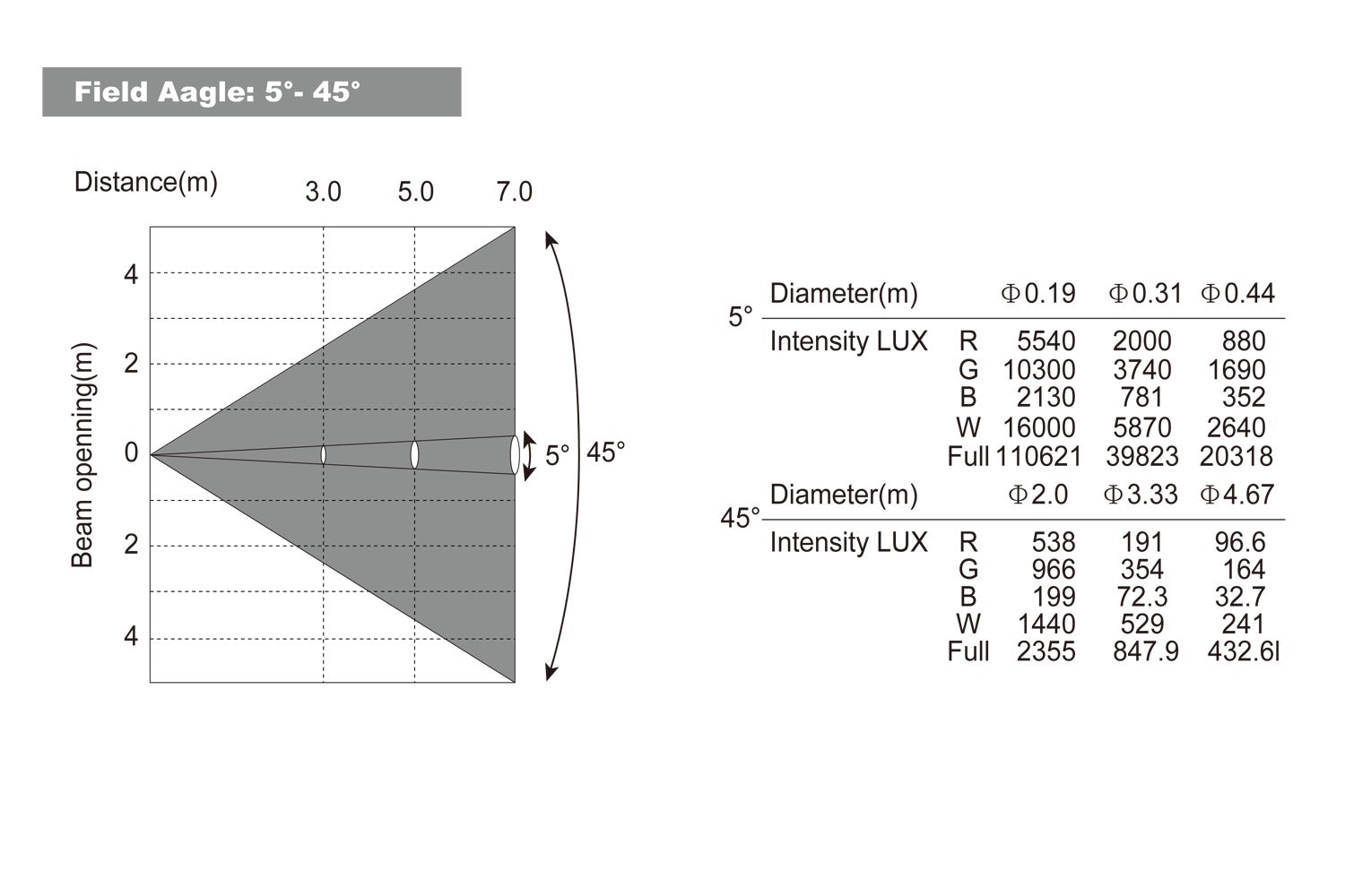 - Output: 4,303 lumen, 107,431 lux @ 5°, 3m; 2,355 lux@ 3m @ 45°