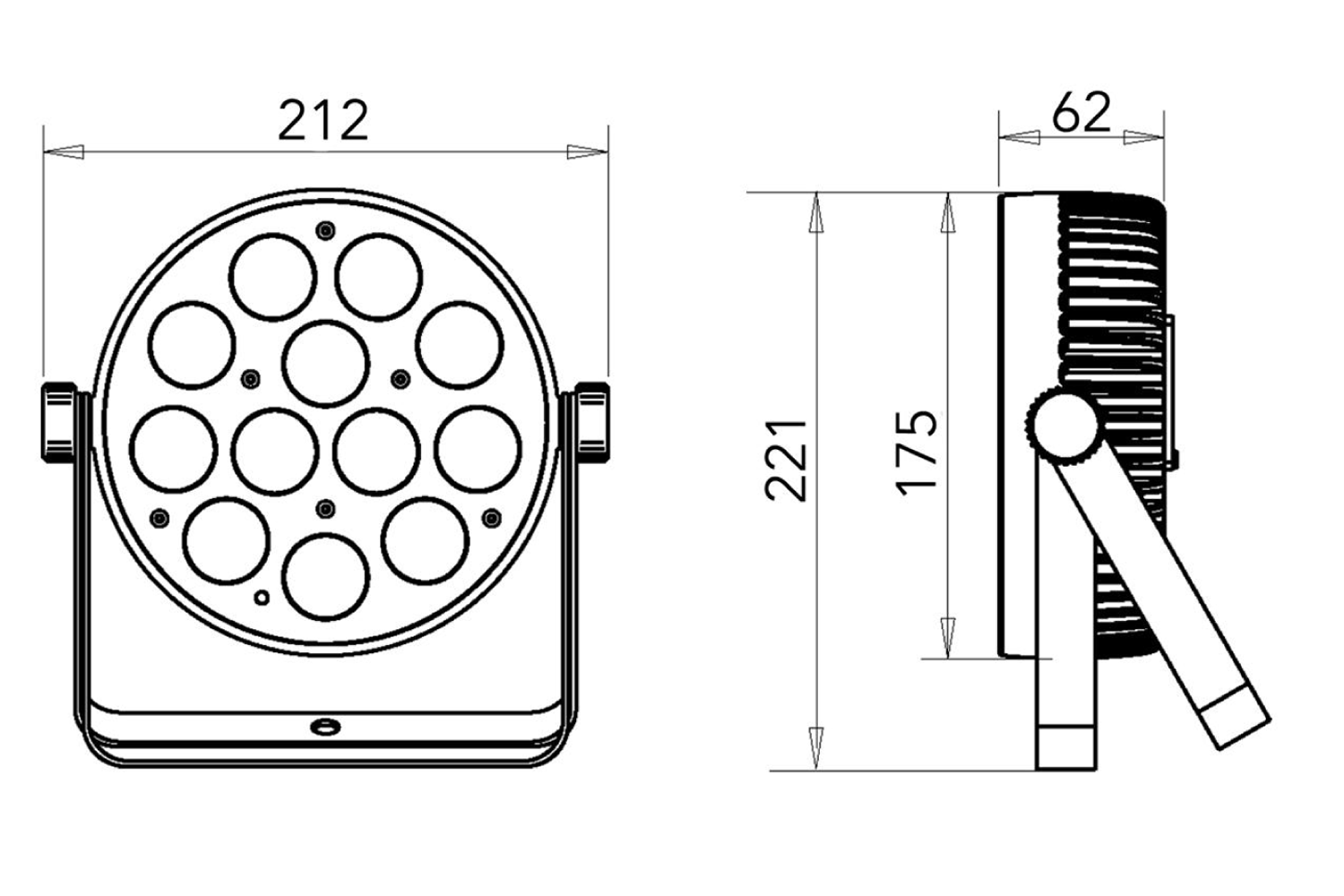 PAR12X4UVL is a dedicated UV Parcan features a sturdy, fanless aluminium housing. This UV parcan is sure to bring the party vibe with 12 punchy 4W UV LEDs.