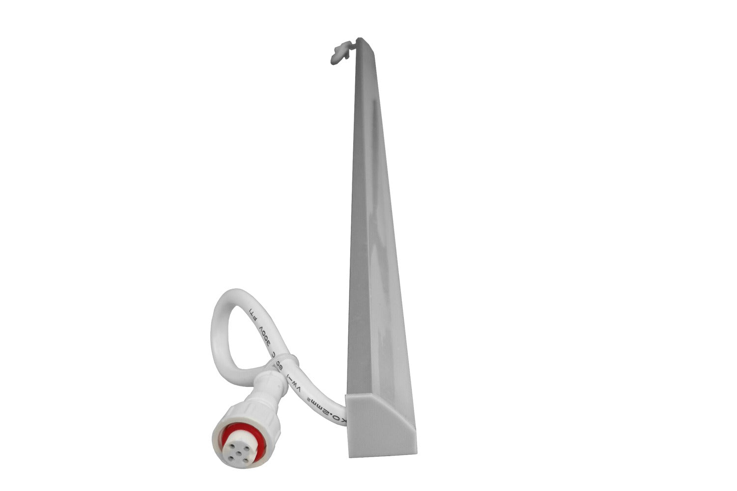 Rigid COB RGBW led strip light, with profile. Input:DC24V. LED:896pcs sanan chips/meter. 20W/M RGB+3000K. STRIP light width:12mm. Length: 990MM. With 1 female and 1 male connector at the ends. IP42 for indoor. Difference from PL1RGBW:cables are from back hole.
