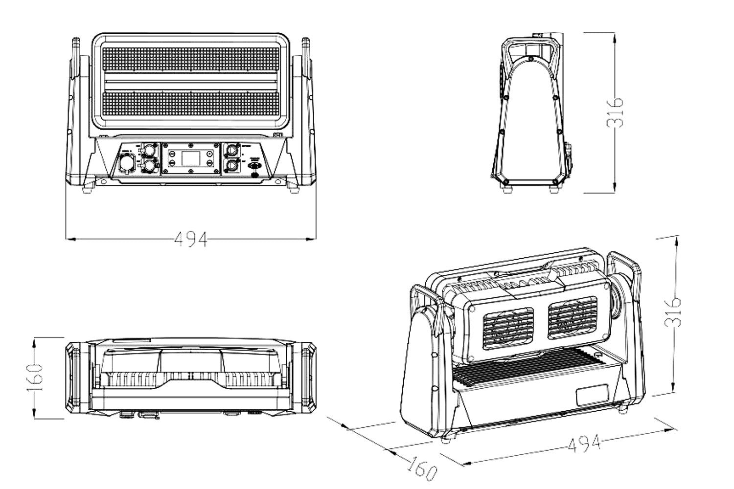- Surface effect: 784pcs RGB 0.8W RGB 3in1 LEDs - Beam angle: 117°