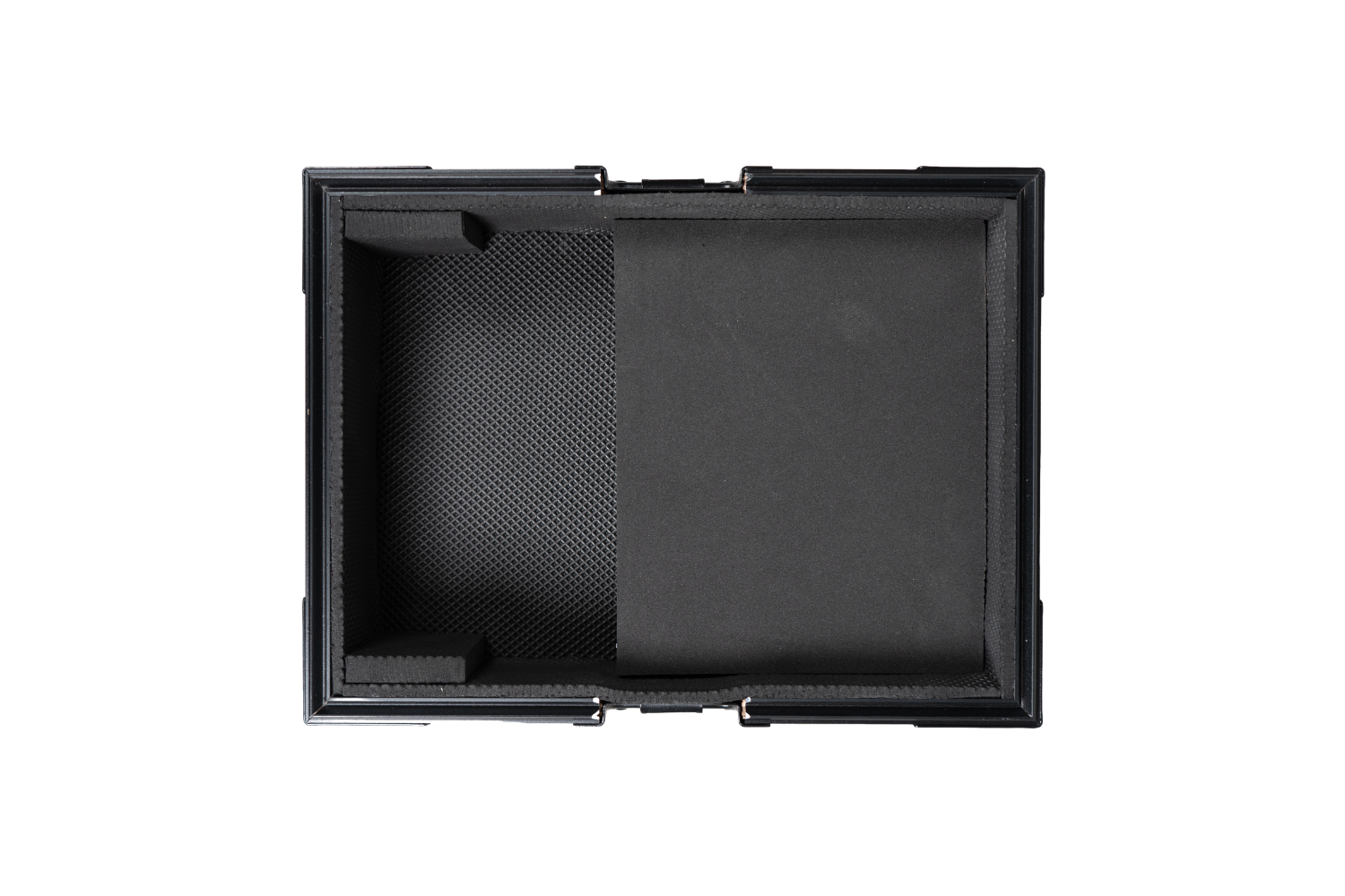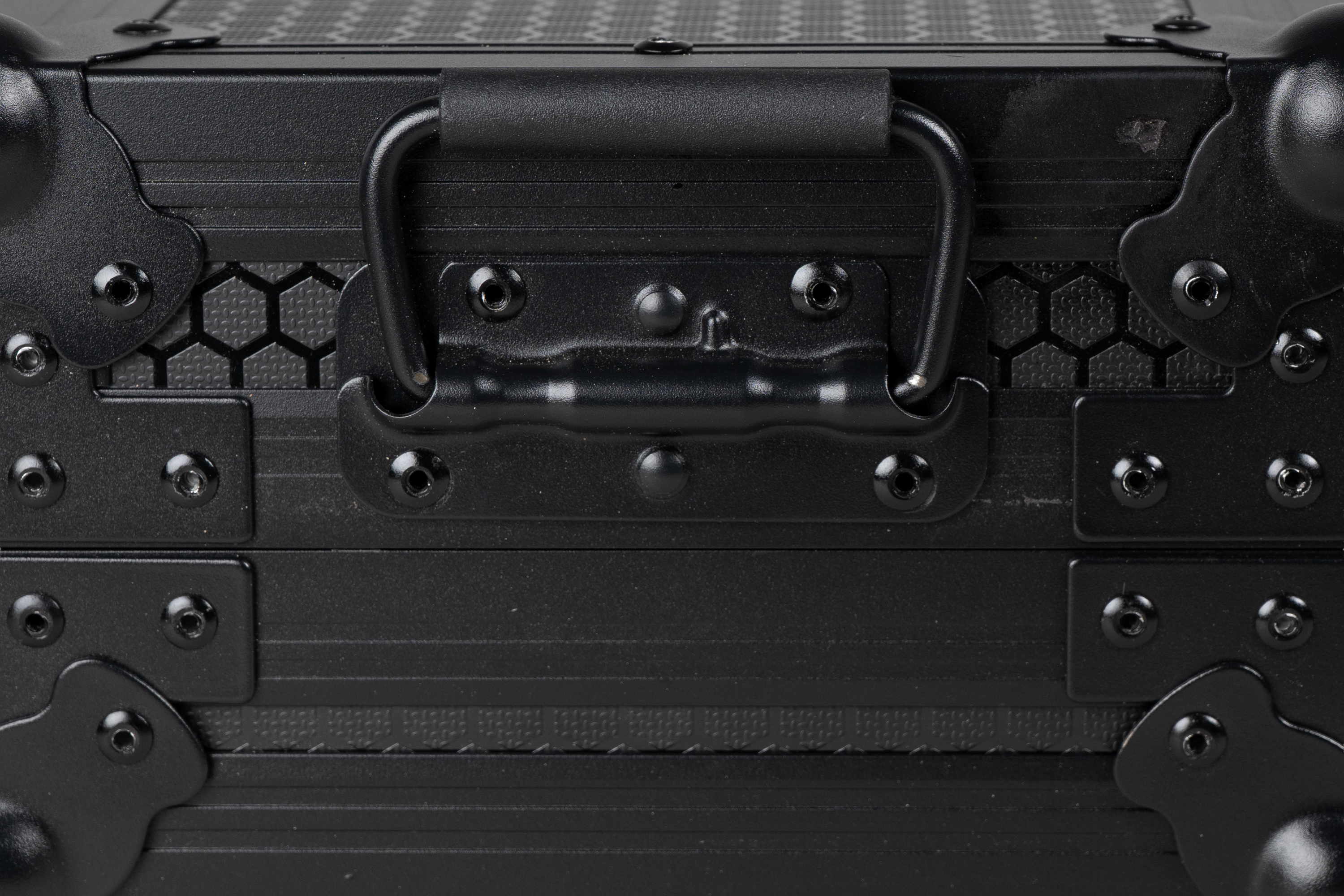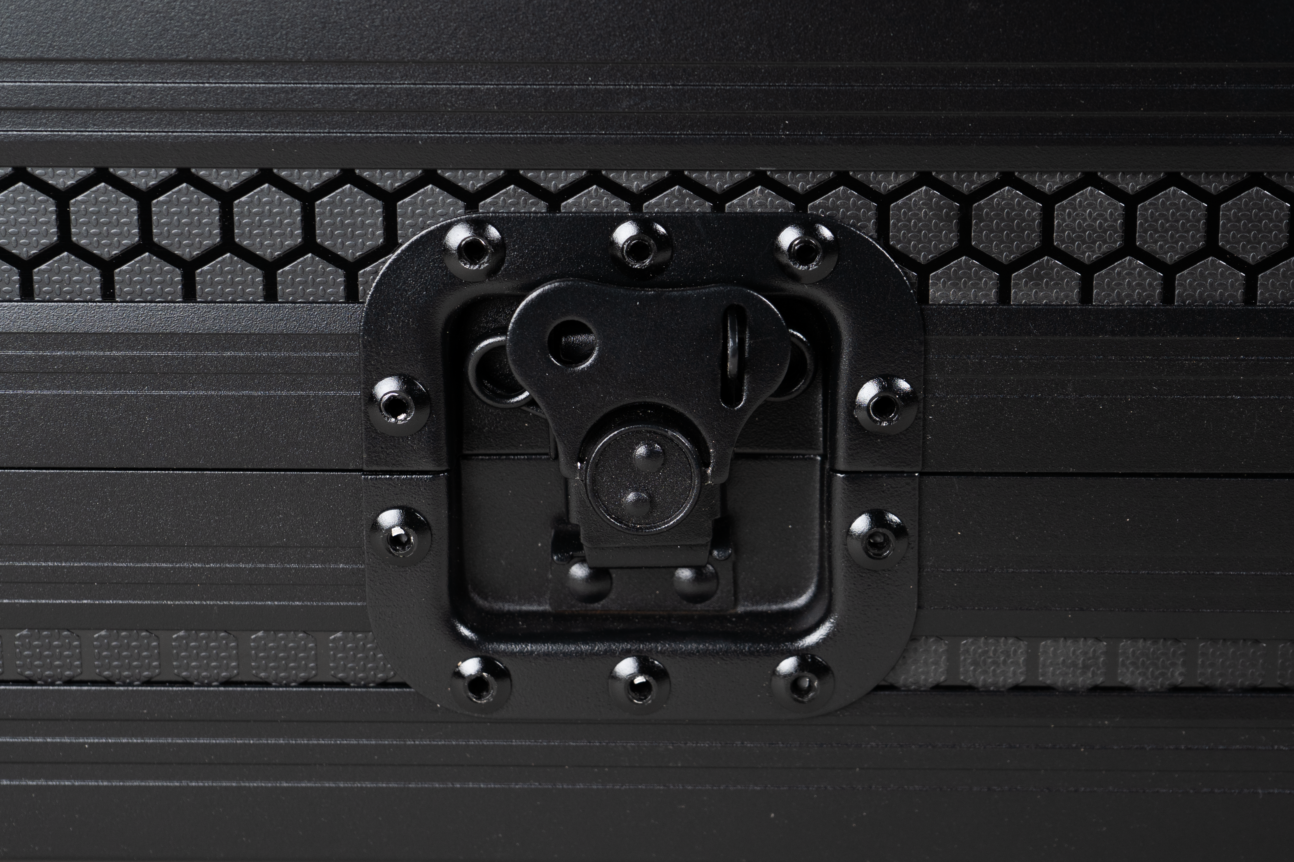 Rigid Protective Carry Case for WOLFMIX W1, built with pad-lockable latches and recessed spring handles. 5-ply construction is coated with a black textured laminate finish for easy cleaning.