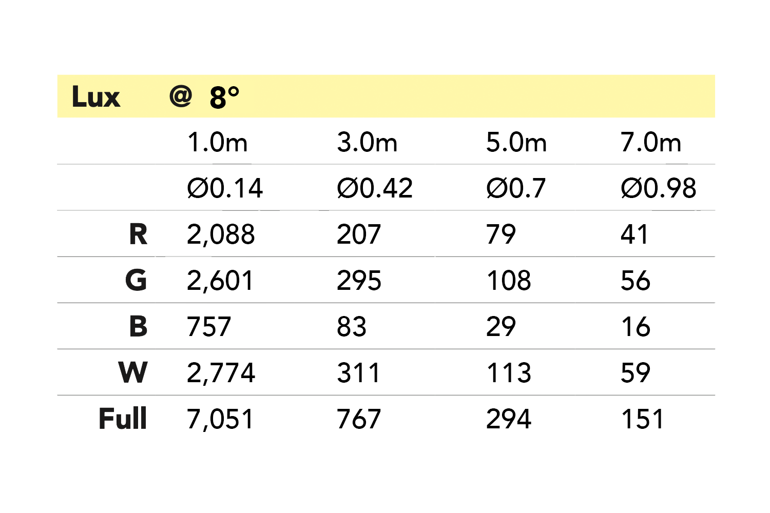 - Light Source: 1 x 15W RGBW 4-in-1 LED