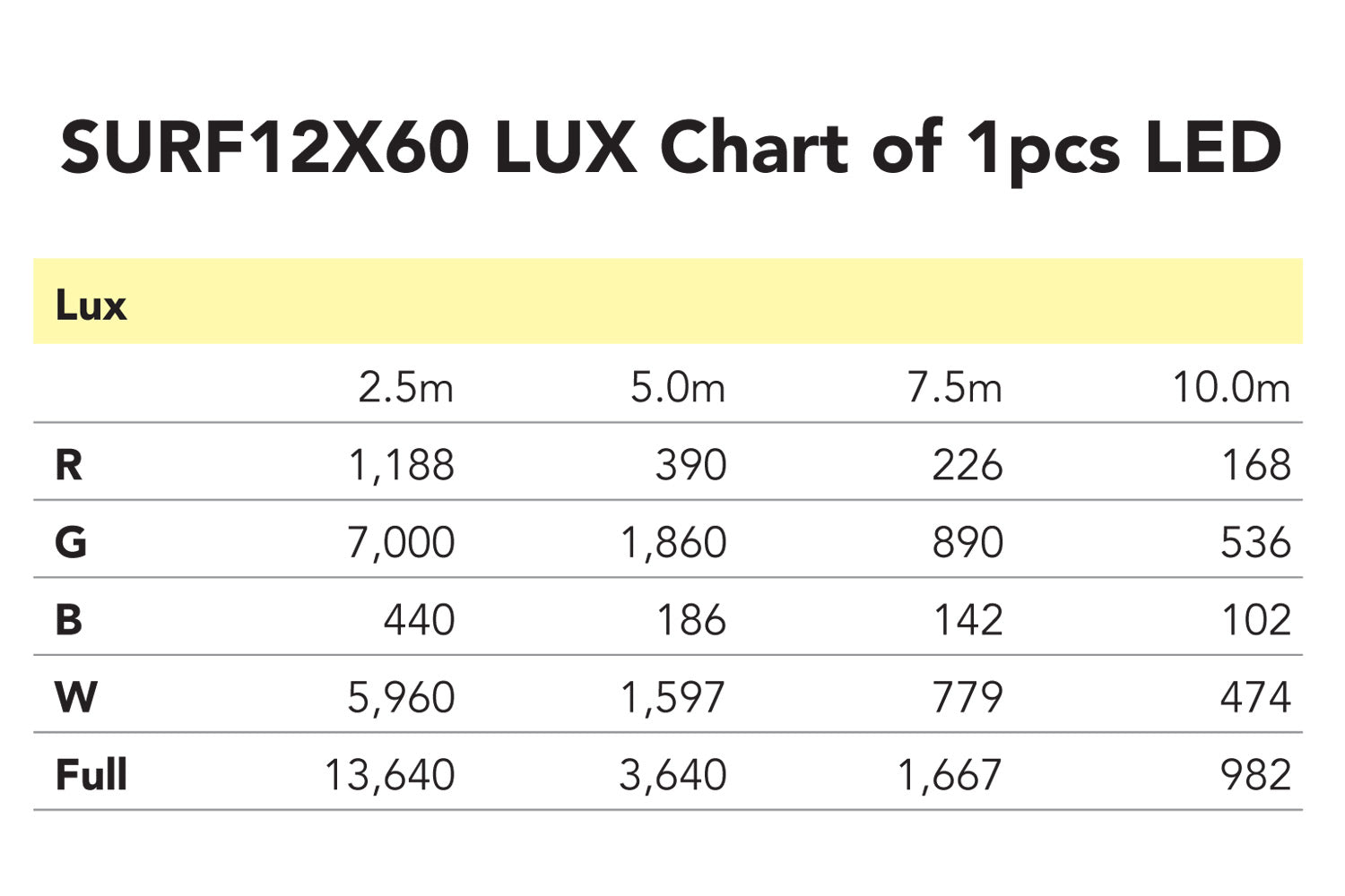 - Light Source: 12 x 60W RGBW 4 in 1 LEDs